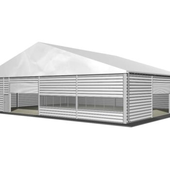 Çatı için tek katmanlı endüstriyel sınıf PVC kumaş kullanılır ve duvarlar için oluklu çelik sac seçenekleri mevcuttur.